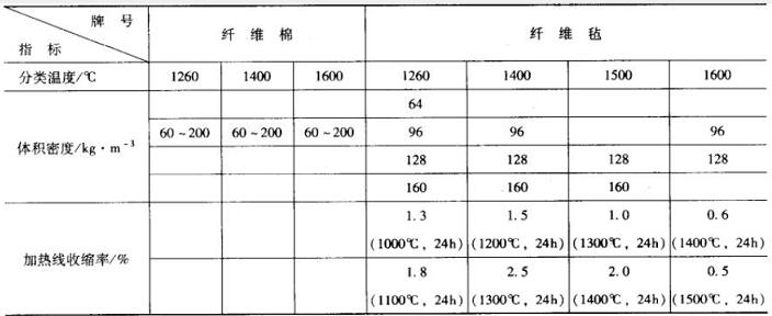 表4 耐火纖維棉 (毯)主要技術指標